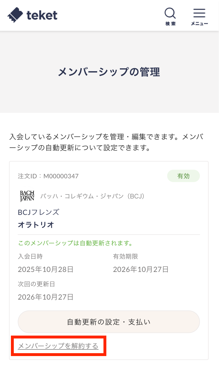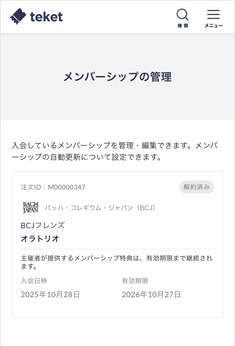 ※申し込まれたメンバーシップの特典は、有効期限まで有効です。