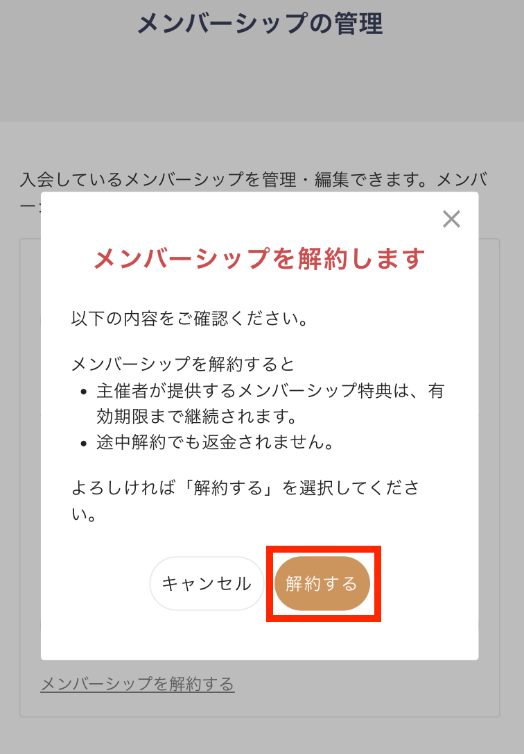 3. メンバーシップの管理内の「メンバーシップを解約する」を押します