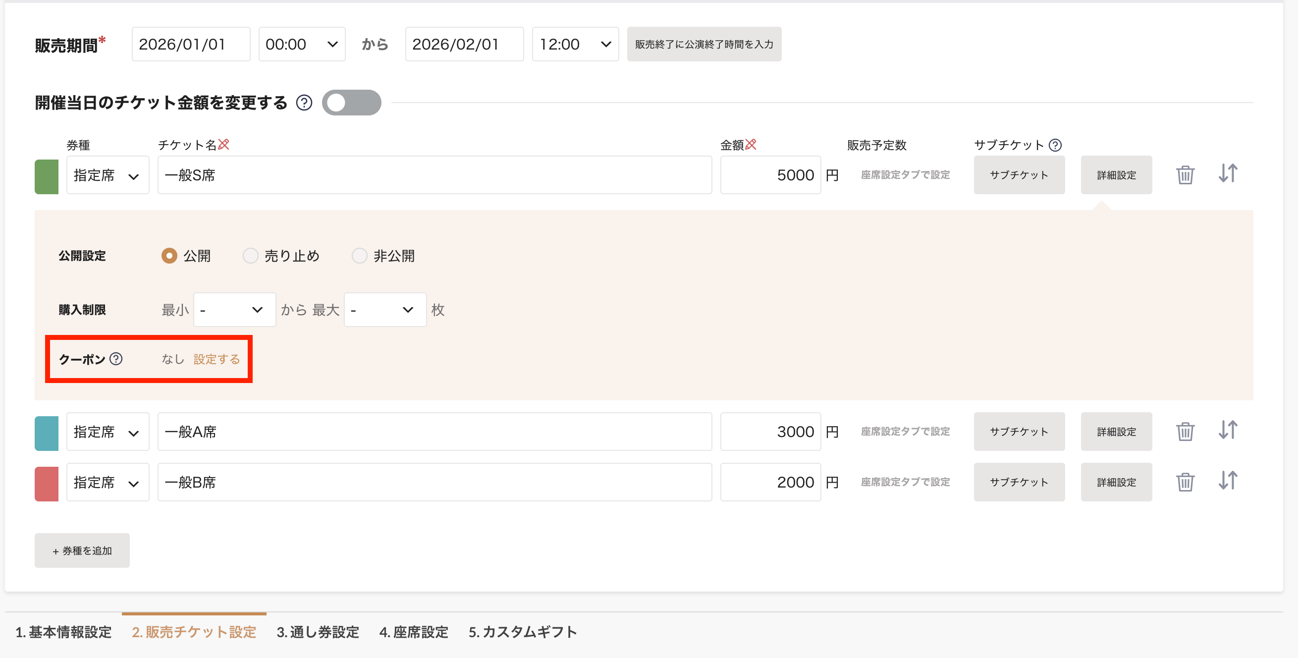 クーポン(チケットの割引)の設定方法