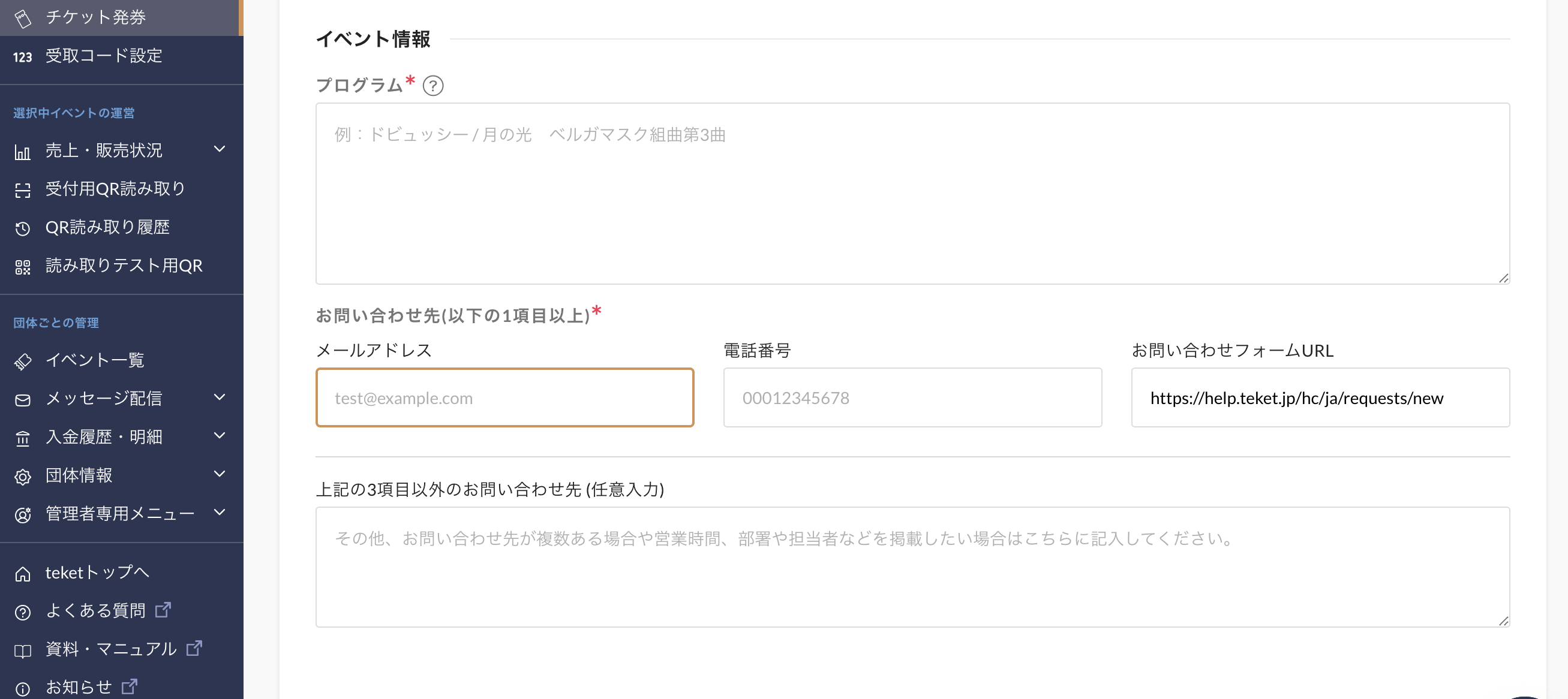 ※開催日時、開演・終演時間、会場名・住所、チケット情報の一部機能(上記のアイコンがある項目)は、イベント公開後は変更できません。